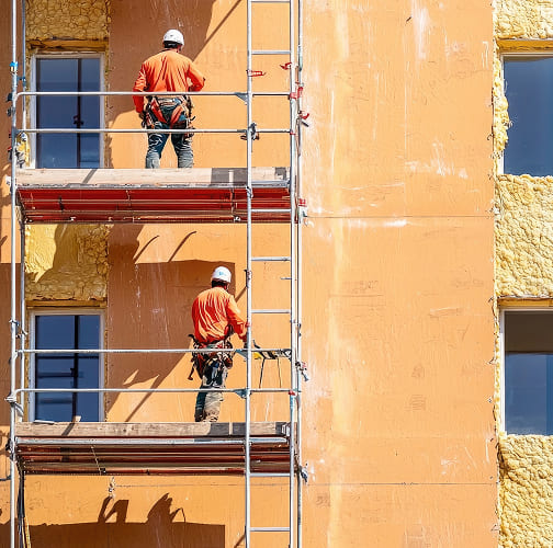 Isolation des murs par l'extérieur sous enduit ou bardage. Supprime les ponts thermiques et rénove la façade.